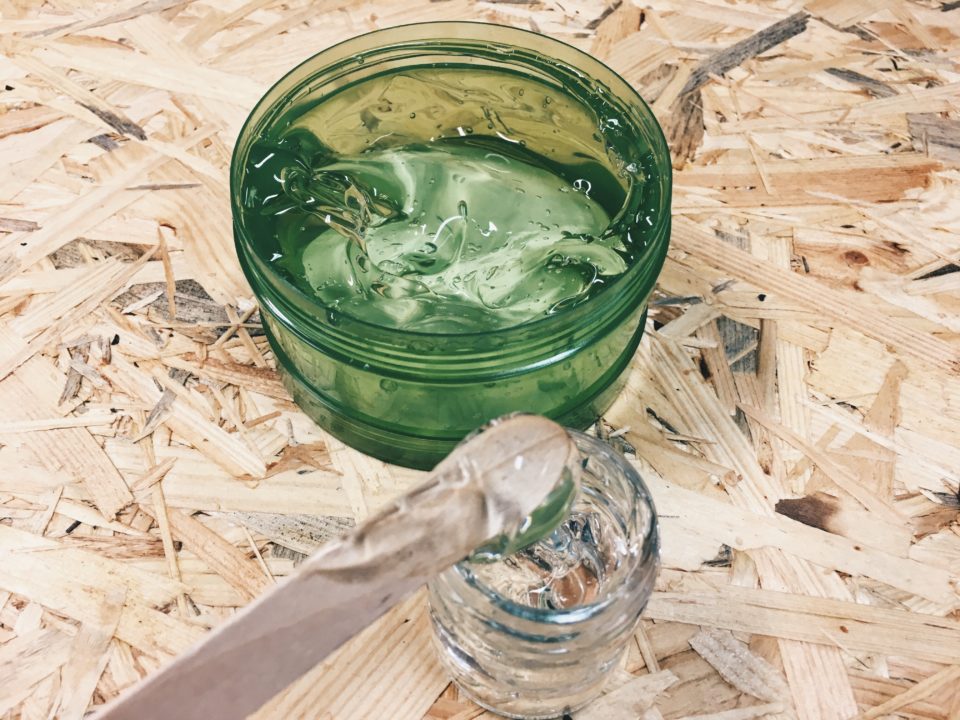 1. 1/4 szklanki żelu aloesowego – szybko się wchłania, regeneruje skórę, ma właściwości bakteriobójcze i regenerujące