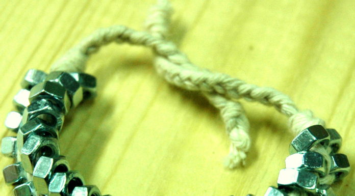 Wkręć się w recykling! Stwórz bransoletkę, bądź naszyjnik z nakrętek po śrubach. Do ich wykonania będziesz potrzebował bawełnianego sznurka i dużą ilość nakrętek (nawet przeszło 40 w zależności od szerokości nadgarstka). Całość opiera się na zwykłym warkoczu lub na splocie makramowym.