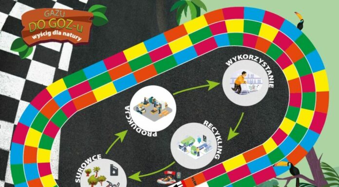 Oprócz dobrze znanej i chętnie kupowanej gry plenerowej „Spacerkiem po wiedzę”, w ofercie Sklepu Abrys pojawiła się nowa propozycja podłogowa gra „Gazu do GOZ-u”, poświęcona edukacji w zakresie gospodarki o obiegu zamkniętym.