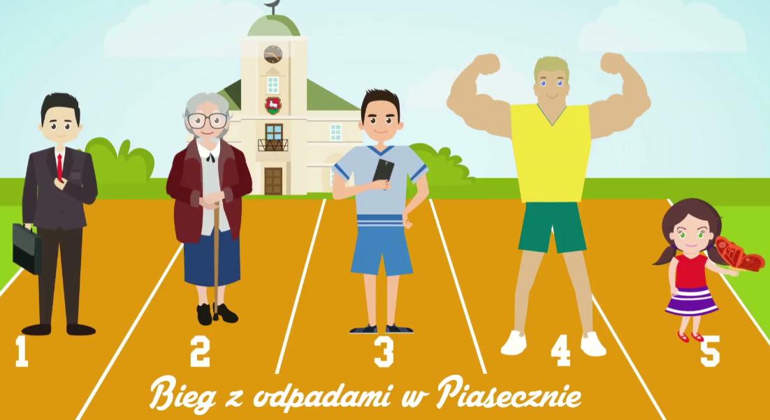 Animacja przygotowana przez Gminę Piaseczno w ramach kampanii „Segregujesz i zyskujesz” przedstawia przebieg wyścigu kilku postaci, które w trakcie wyścigu napotykają na rozmaite odpady i problemy z nimi związane. Sposób, w jaki zawodnicy postąpią z określonym odpadem, determinuje to, czy biegną dalej, czy zostaną wyeliminowani. Zachęcamy do oglądania!