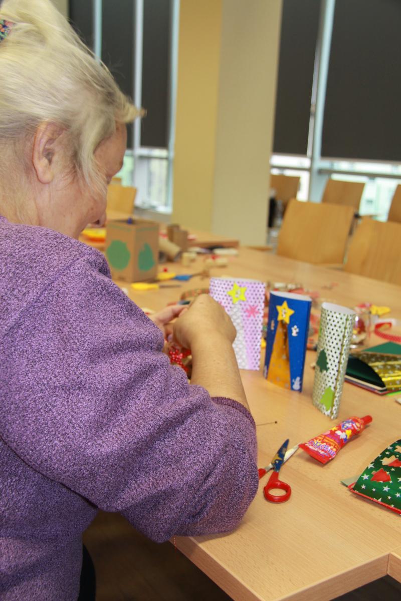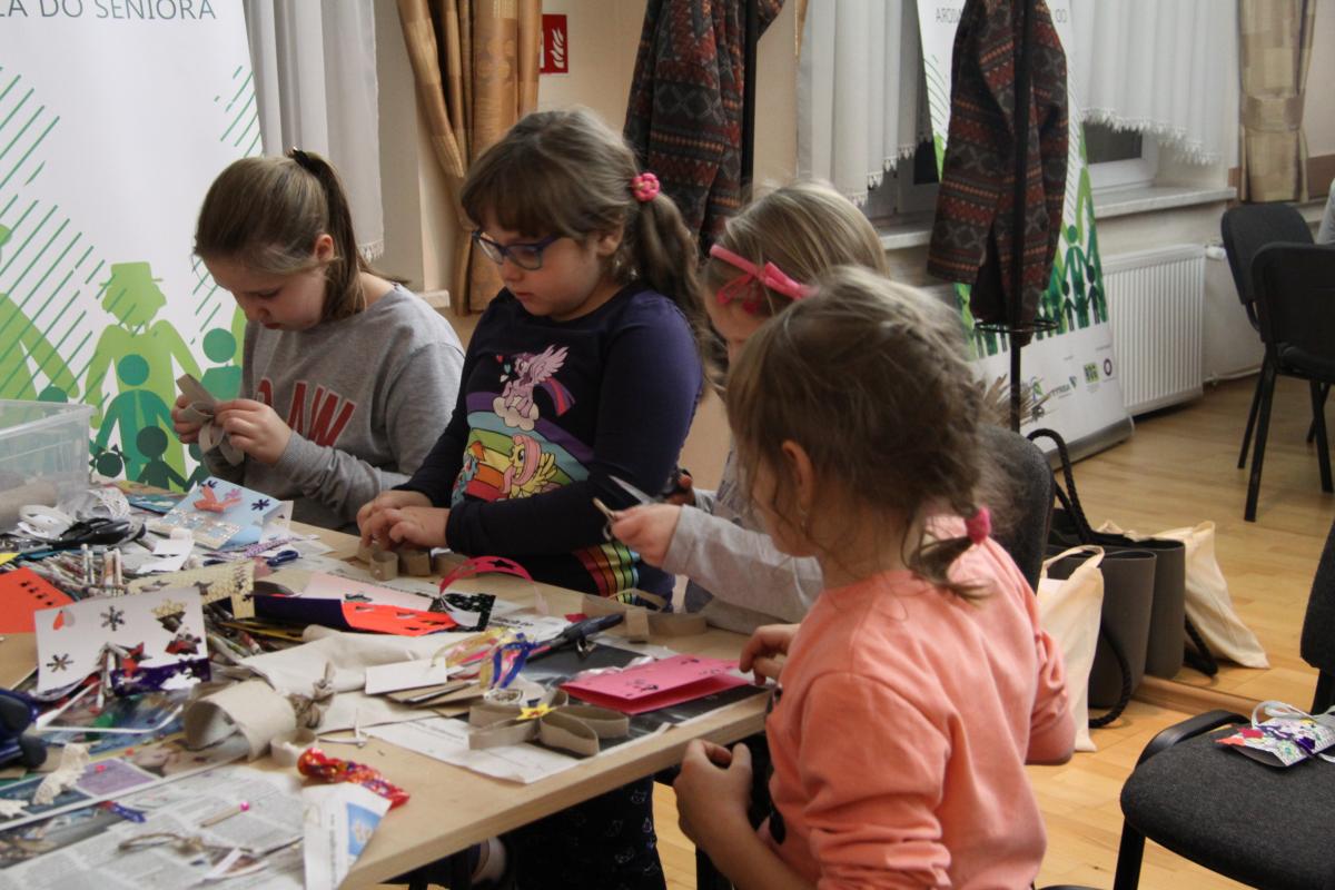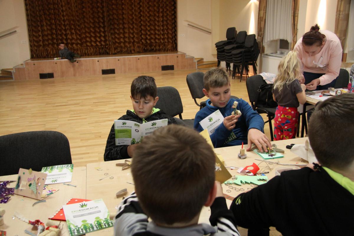 Kartki świąteczne oraz ozdoby wykonywane są ze starych korków po winie czy rolek po papierze toaletowym. Wyobraźnia podpowiada różne wzory i rozwiązania. Każda praca jest inna i niepowtarzalna. Warsztaty maja charakter otwarty. Każda chętna osoba może przyjść i wykonać własne dzieło. Zajęcia odbyły się w Miejskiej Bibliotece Publicznej w Chrzanowie oraz Domu Kultury w Żarkach.