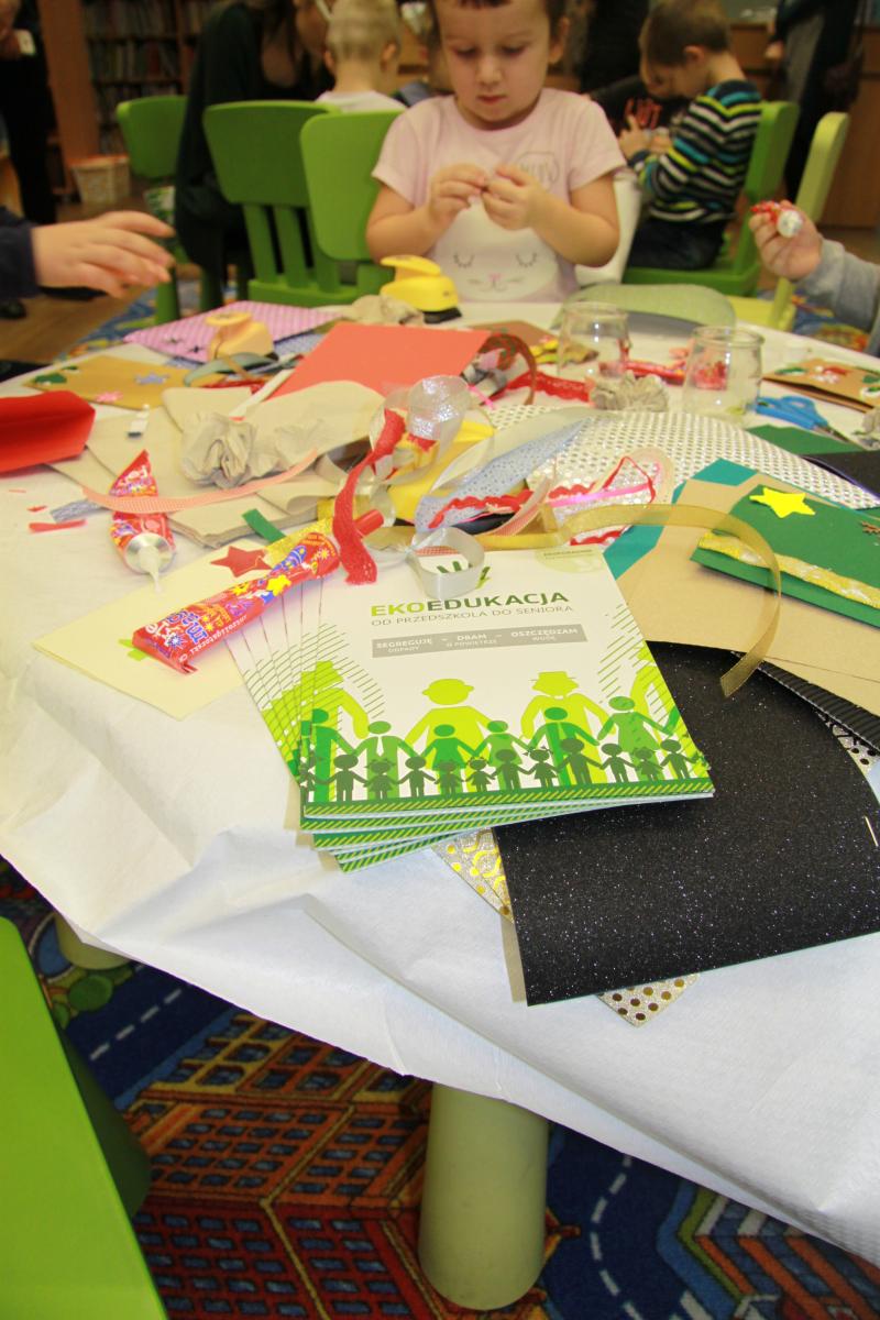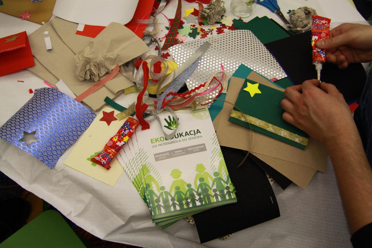 Korki po winie, rolki od papieru, stare gazety? To podstawowe materiały z których tworzymy świąteczne kartki i ozdoby w ramach programu ?EKOedukacja od przedszkola do seniora?.