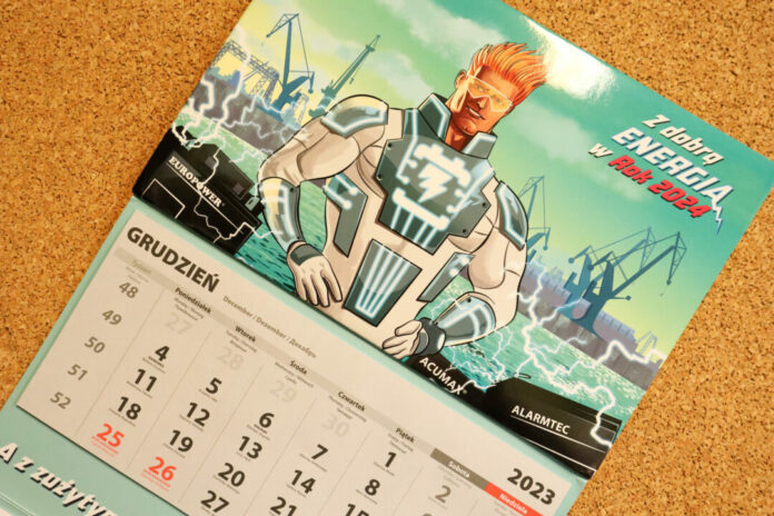 Wydany przez firmę EMU trójdzielny kalendarz z rysunkiem superbohatera i ekologicznym hasłem, to kolejny produkt z uniwersum Europowera. Brand hero dla producenta akumulatorów stał się  skutecznym narzędziem, zarówno marketingowym, jak i edukacyjnym.
