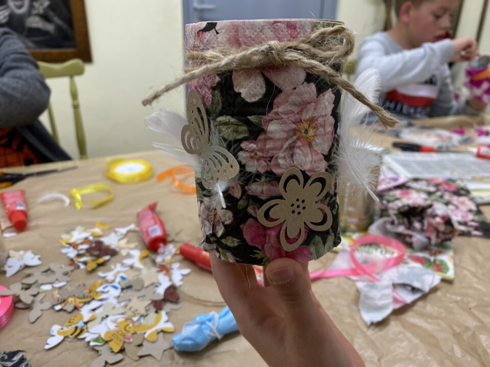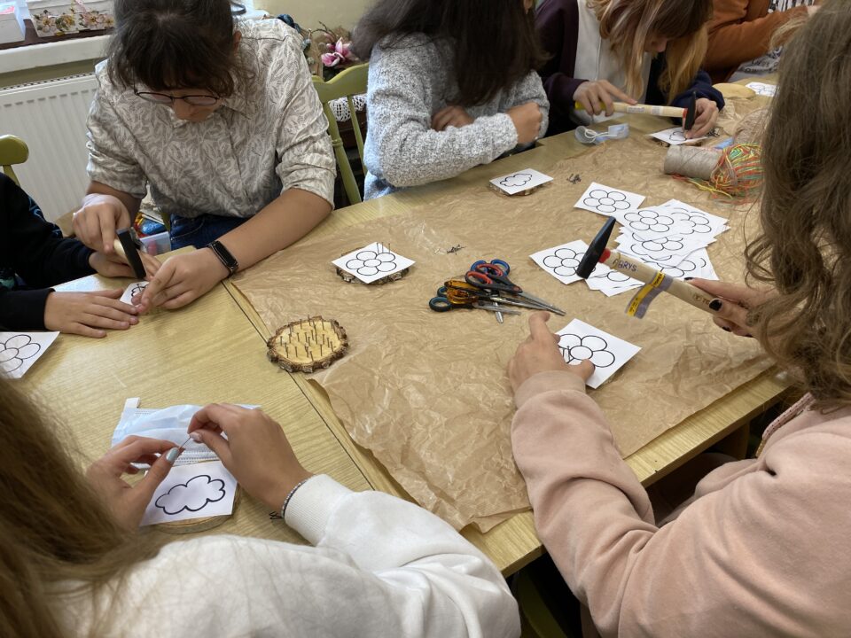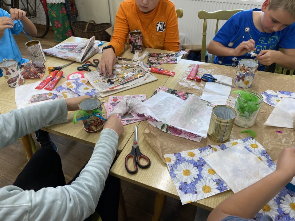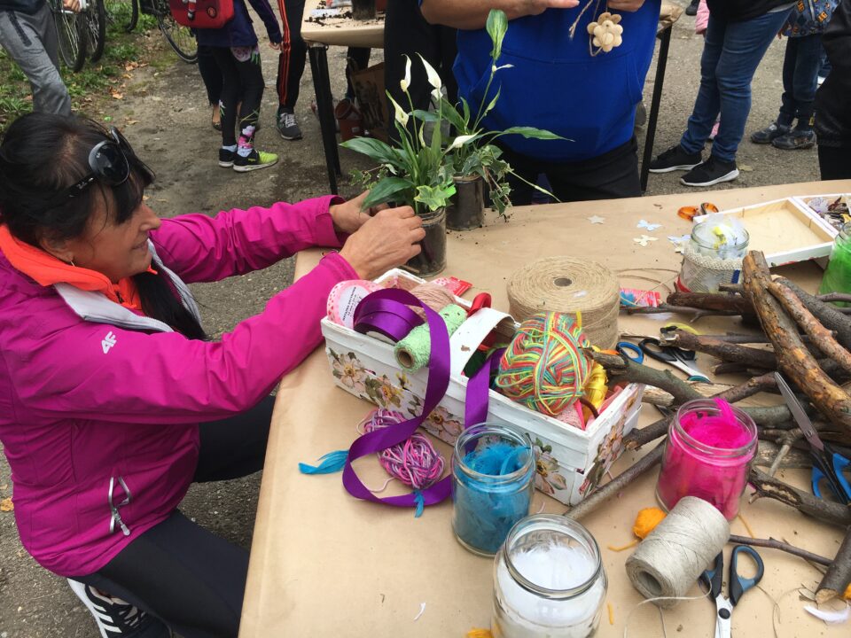 Dla uczestników rajdu przygotowano także warsztaty. Na jednych z nich przygotowywano „Las w słoiku”, który  odgrywa ogromną rolę w oczyszczaniu powietrza, zatem świetnie wpisywał się w temat działań edukacyjnych Biblioteki Publicznej w Chrzanowie. Nieodłącznym elementem edukacji na temat ochrony powietrza jest także właściwa gospodarka odpadami. O tym z kolei była mowa podczas warsztatów „Bibeloty na gałęzi”, podczas których niepotrzebne przedmioty, takie jak korki, makulatura, wytłoczki po jajkach, stara włóczka były wykorzystywane do stworzenia fantastycznych dekoracji.