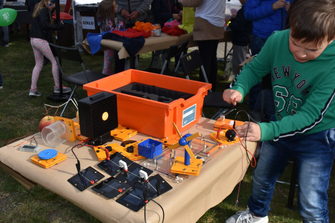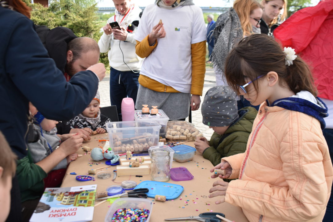 Warsztaty kreatywne są świetną okazją do kształtowania postaw proekologicznych. By mieszkańcy mogli inaczej spojrzeć na odpady, w ramach pikniku nadawano im nowe życie. Przykładowo z korków po winie robiono breloki, ze starych skarpetek maskotki, a z bawełnianych koszulek bransoletki. W kreatywne wykorzystanie odpadów zaangażowane były całe rodziny – a frajdę z tego czerpali dorośli i dzieci. Dużym zainteresowaniem cieszyło się także koło fortuny, w którym za poprawne udzielenie odpowiedzi na zadane pytanie (np. dotyczące segregacji odpadów), rozwiązanie zadania (np. ułożenie puzzli ze wzorem recyklingu) czy też rebusu można było otrzymać komiks „Dymski kontra dymony”, który idealnie wpisywał się w działania popularyzujące walkę o czyste powietrze. Elementem działań edukacyjnych były również warsztaty „Kilowaty zabawy”, którymi z kolei najbardziej zainteresowani byli chłopcy. Na stanowisku można było sprawdzić swoje umiejętności konstrukcyjne i elementarną wiedzę z zakresu fizyki, tworząc różnorodne układy energetyczne, w tym również wykorzystujące odnawialne źródła energii. Warsztaty prowadzili animatorzy z Działu Edukacji Ekologicznej firmy ABRYS.