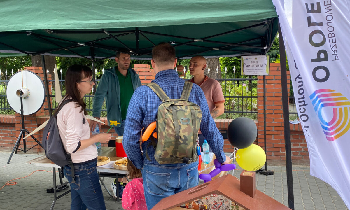 Przy ekostoisku działał również punkt konsultacyjny, gdzie eksperci udzielali porad z zakresu efektywności energetycznej w domu, izolacji oraz alternatywnych metod pozyskiwania energii. Odwiedzający punkt mieszkańcy chętnie zadawali pytania i dowiadywali się więcej na temat zrównoważonego wykorzystania energii w swoich domach, a także dostępnych programów wsparcia i dofinansowania.
