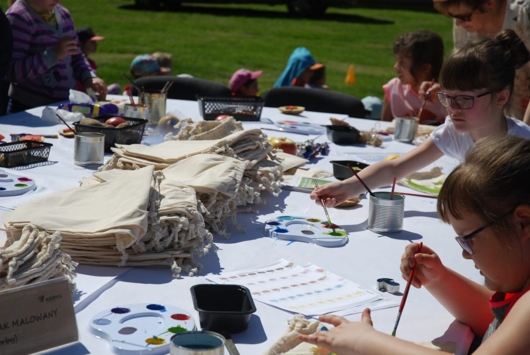 W trakcie ekologicznego spotkania Dział Edukacji Ekologicznej ABRYS przeprowadził warsztaty pokazujące, w jaki sposób można kreatywnie nadać drugie życie zużytym przedmiotom. Powstały m.in. recyklingowe świeczniki i zakładki do książek. Pokazaliśmy także, jak zrobić ciekawą biżuterię dla najmłodszych oraz breloki do  kluczy. Uczestnicy warsztatów  mogli też samodzielnie przyozdobić lniane woreczki ziemniaczanymi stemplami.
