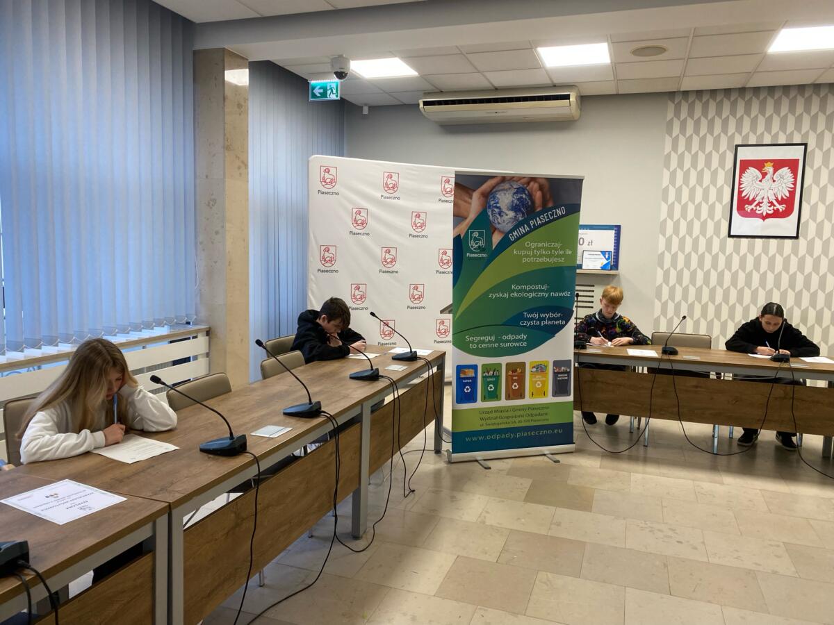 Drugi etap konkursu odbył się 4 grudnia 2024 roku w sali konferencyjnej Urzędu Miasta i Gminy Piaseczno. W tym etapie uczestnicy zmierzyli się z bardziej zaawansowanymi zadaniami – testem wielokrotnego wyboru oraz pytaniem otwartym, które wymagało analizy problemów związanych z gospodarką odpadami i proponowania innowacyjnych rozwiązań.