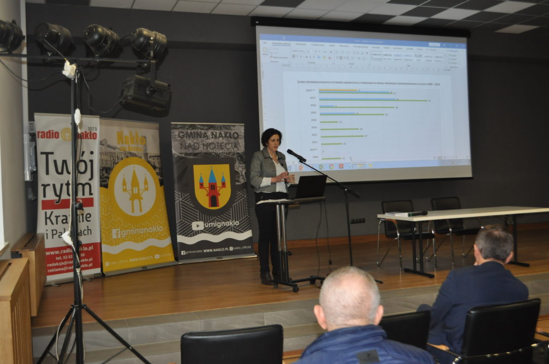 Zmiany sposobów ogrzewania wiążą się nierozerwalnie z kwestią dofinansowania tych zmian. O możliwościach uzyskania środków finansowych na wymianę ogrzewania na bardziej ekologiczne bądź na termomodernizację budynku mówiła Monika Pawłowicz, doradca energetyczny z Wojewódzkiego Funduszu Ochrony Środowiska i Gospodarki Wodnej w Toruniu. Pieniądze można m.in. uzyskać z rządowego Programu „Czyste powietrze”. O tym, z kolei jak pieniędzy nie stracić mówił z koeli Roman Frąckowiak, komendant Straży Miejskiej w Nakle nad Notecią. Odniósł się do możliwości kontrolnych przez straż miejską w zakresie ochrony środowiska, ze szczególnym uwzględnieniem tej dotyczącej nielegalnego palenia śmieci. Nie wszyscy mieszkańcy bowiem wiedzą, że za takie działanie grozi kara finansowa w wysokości 500 zł, a w skrajnych przypadkach sięgająca nawet 5000 zł.