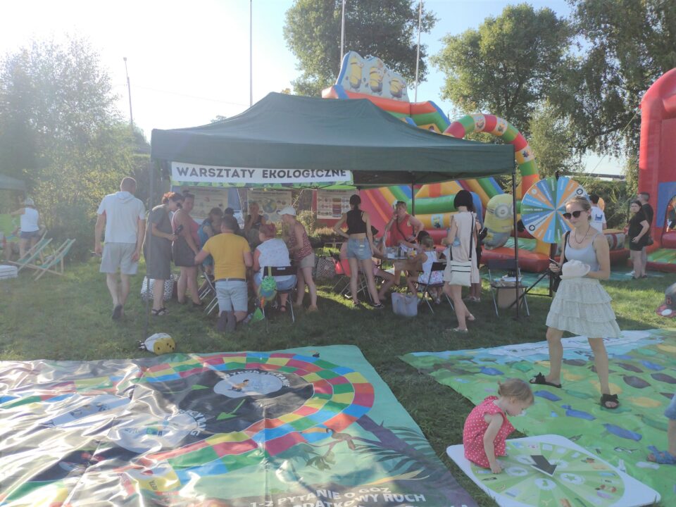 Nie zabrakło także „Koła Fortuny”, które dodatkowo wzbogacało program wydarzenia. Uczestnicy kręcili kołem, losując wyzwania związane z tematyką środowiskową. Rebusy, kalambury, pytania i zagadki dotyczyły m.in. zagadnień związanych z ochroną powietrza, wody i ogólnie ekologią. Za każdą dobrą odpowiedź lub zaangażowanie w zabawę, uczestnicy otrzymywali nagrody, co dodatkowo motywowało do aktywnego udziału.