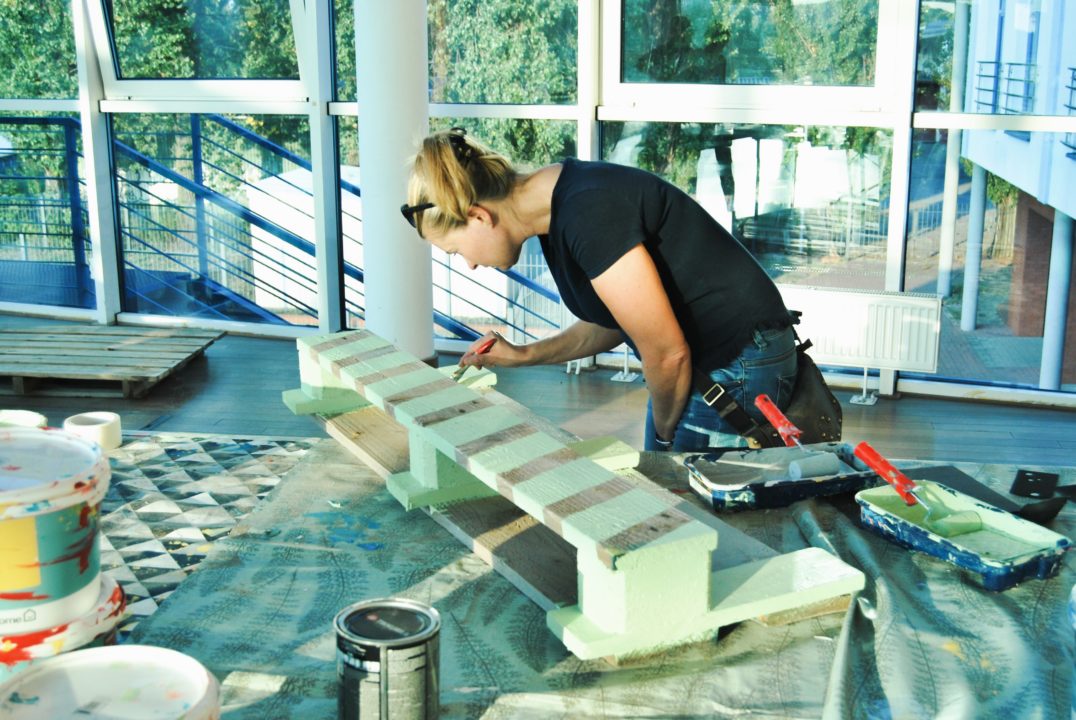 Później w ruch poszły szlifierki, pędzle i farby by wykonać kwietniki z europalet.