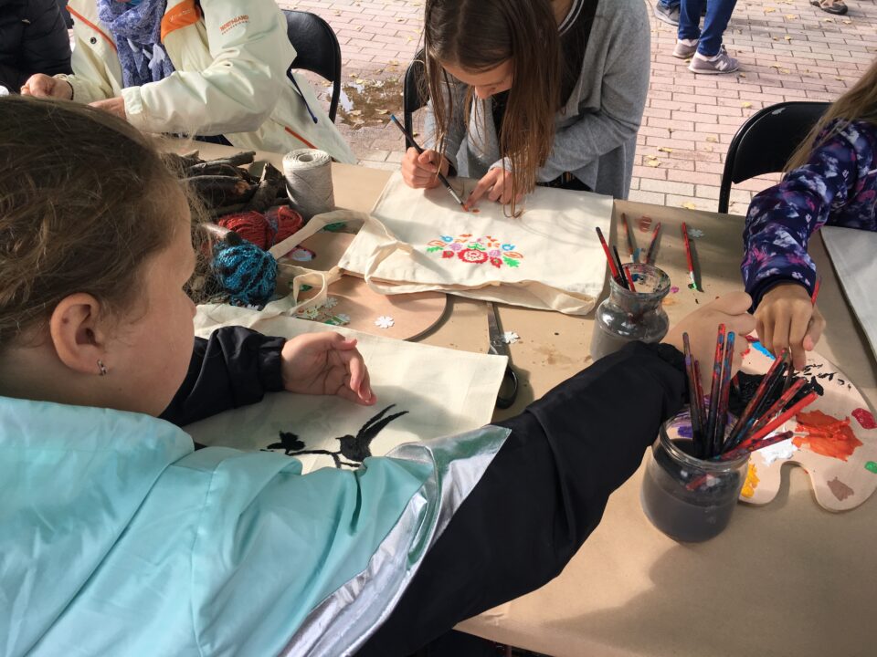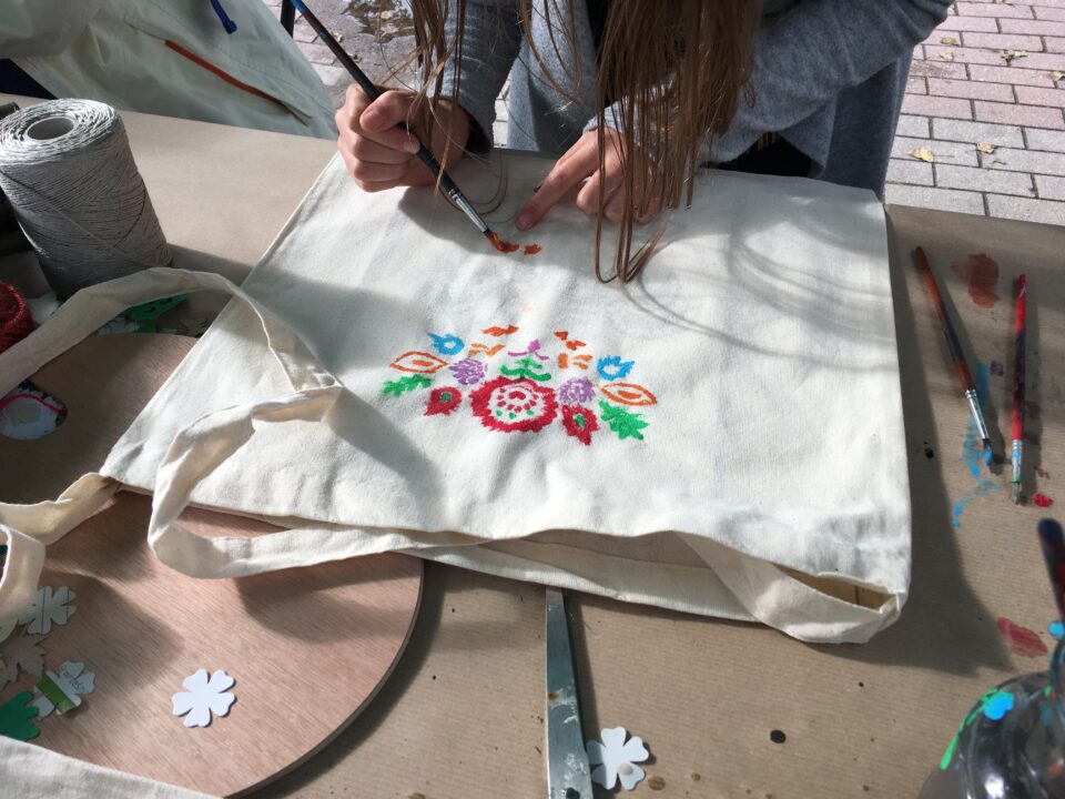 Wykonywaliśmy breloki z korków, „bibeloty na badylach” z organicznych materiałów oraz malowaliśmy ekologiczne, wielorazowe torby na zakupy.
