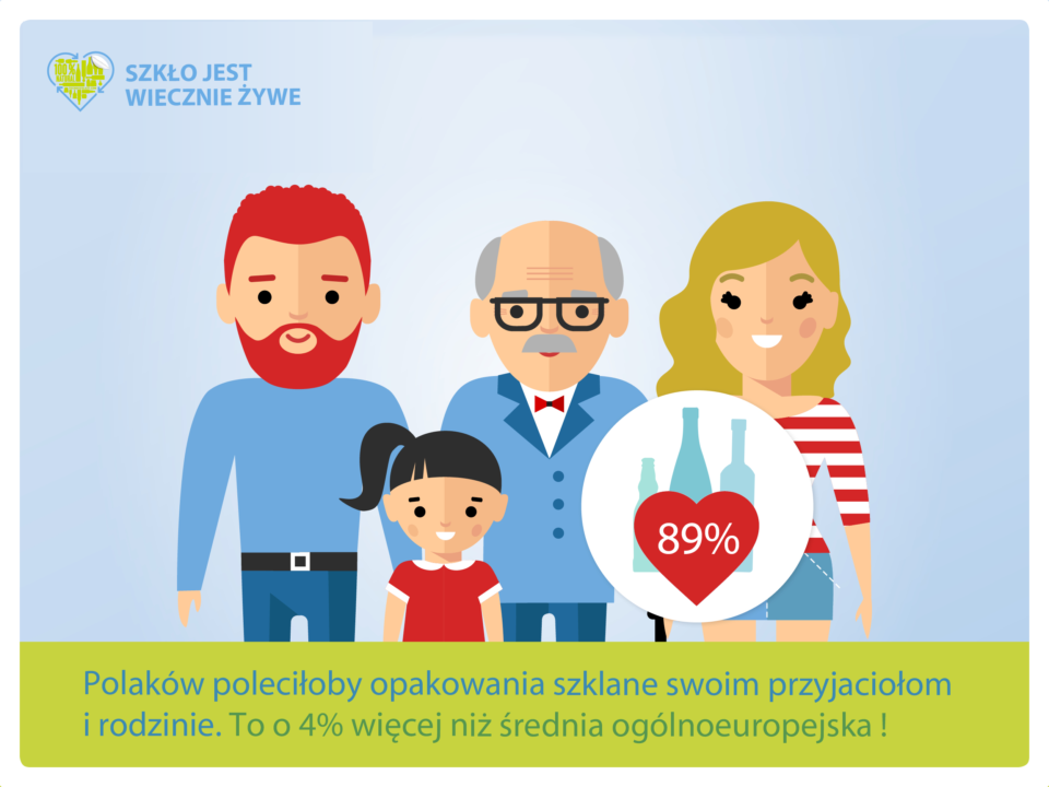 Polacy pokochali opakowania szklane. Już 89% rodaków poleciłoby je, uważając, że to właśnie one są najlepszym wyborem dla zdrowia i środowiska. To o 4% więcej niż średnia ogólnoeuropejska odnotowana podczas niezależnego badania*, zrealizowanego na zlecenie Friends of Glass w jedenastu krajach Starego Kontynentu.